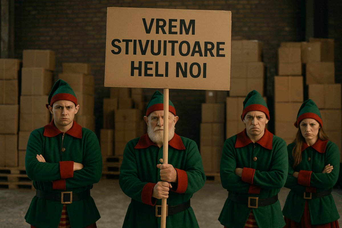 Ultimele paragrafe din listă nu sunau deloc ca o „rebeliune”, ci ca un plan de eficientizare. Elfii propuneau reorganizarea fluxurilor de marfă, utilizarea pe verticală a depozitului și instruirea unei echipe de operatori specializați. Totul culmina cu un paragraf amuzant, dar plin de miez: „Dacă vrem să ajungem în secolul XXI fără să ni se rupă șosetele în dungi, avem nevoie ca Moșul să ne trateze ca pe o echipă logistică profesionistă, nu doar ca pe niște spiriduși buni la toate.”