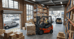Microdepozitele urbane și rolul stivuitoarelor compacte în livrarea de ultimă milă
