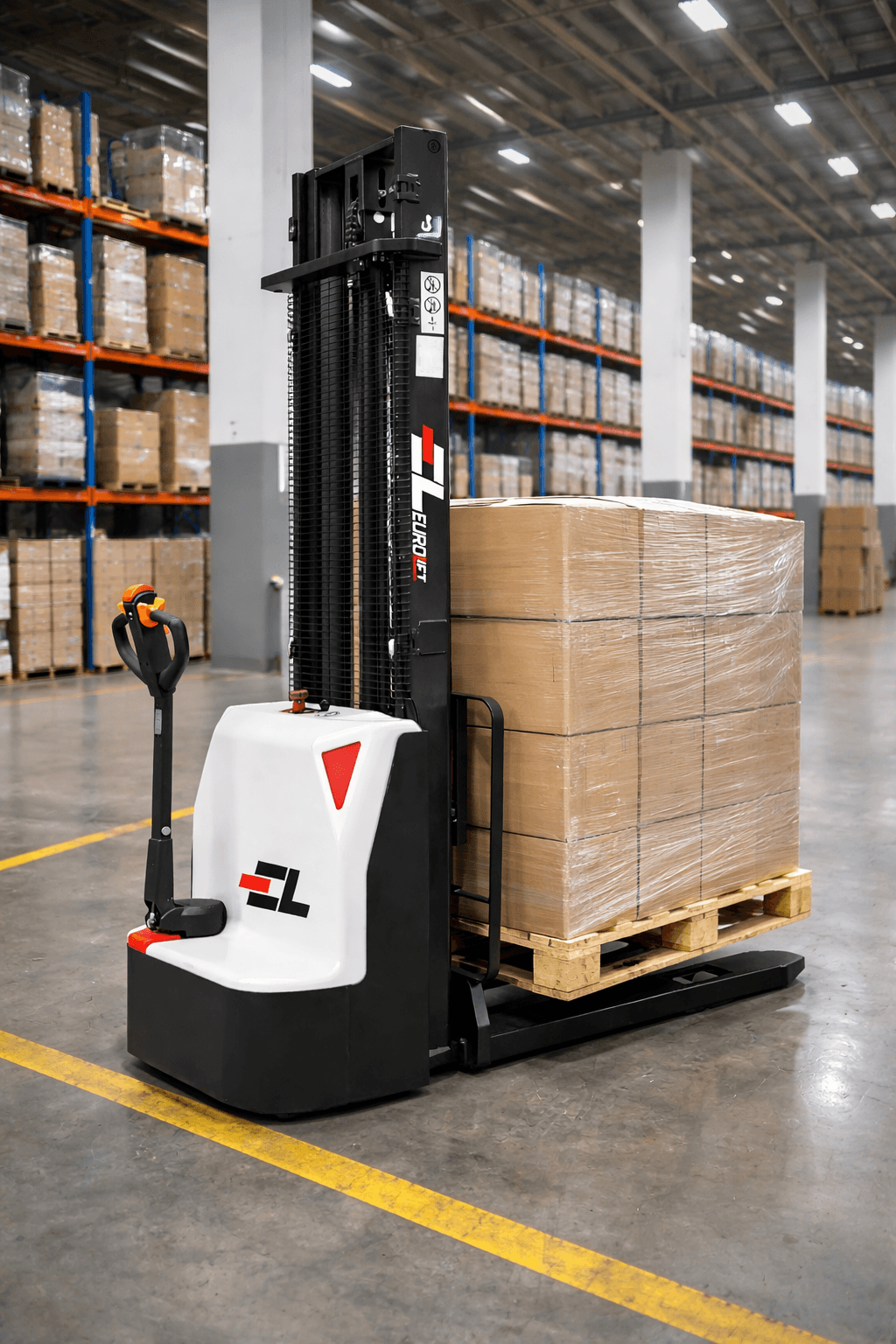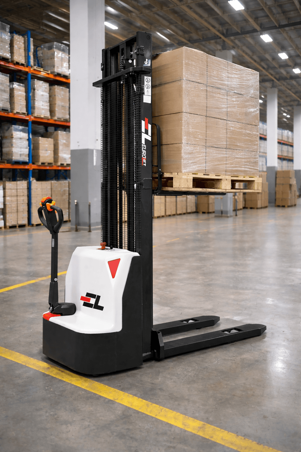 - Transpaletă full electrică cu catarg duplex
